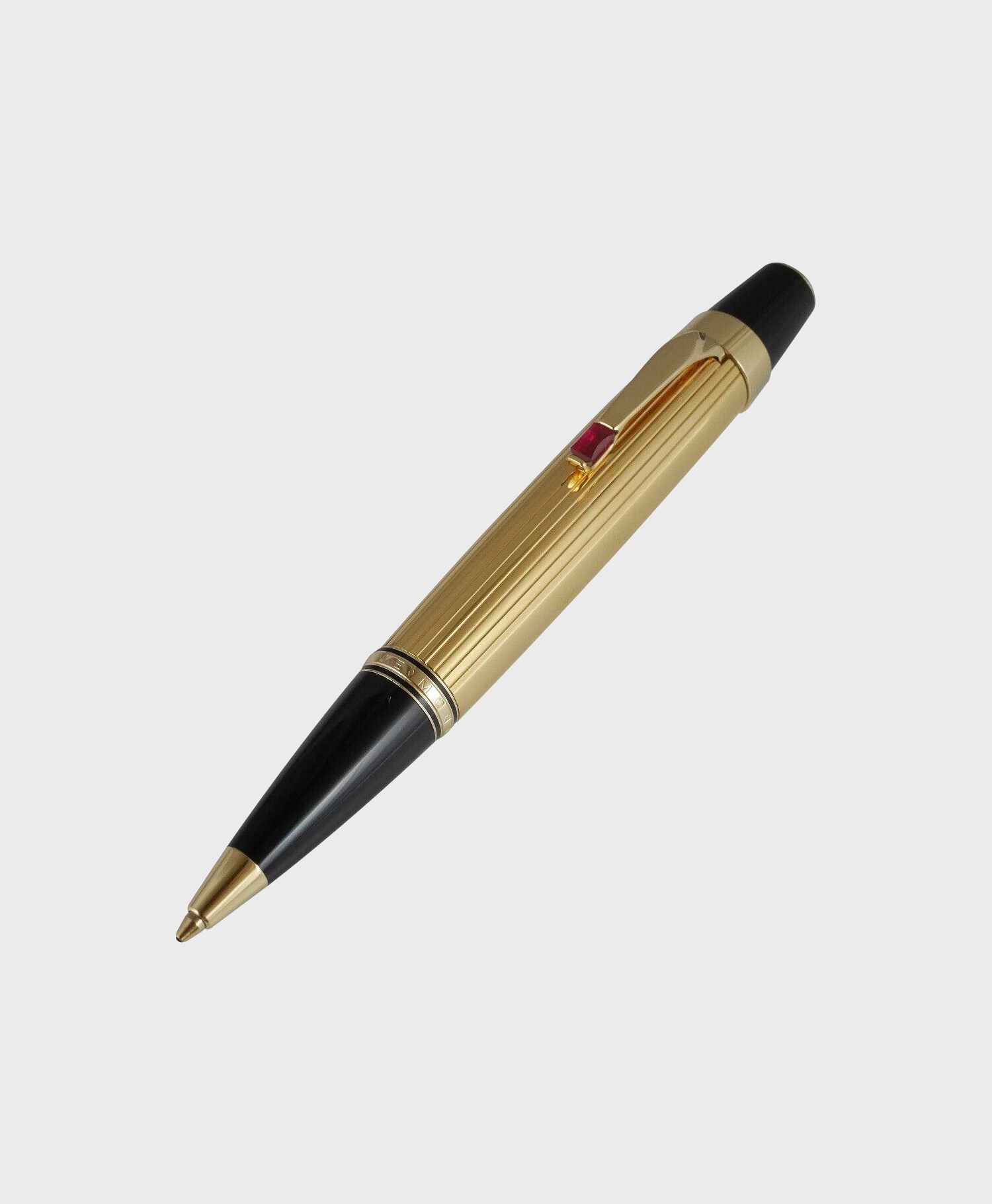 Điểm nổi bật nhất của cây bút này chính là vẻ ngoài cực kỳ bắt mắt. Lớp mạ vàng sáng bóng được xử lý tinh xảo kết hợp với viên đá đỏ tạo điểm nhấn ấn tượng – Phù hợp cho cả nam và nữ yêu thích sự thanh lịch. Thiết kế nhỏ gọn, nhẹ tay nhưng chắc chắn – Mang đến cảm giác cầm nắm thoải mái, thuận tiện khi sử dụng hàng ngày.