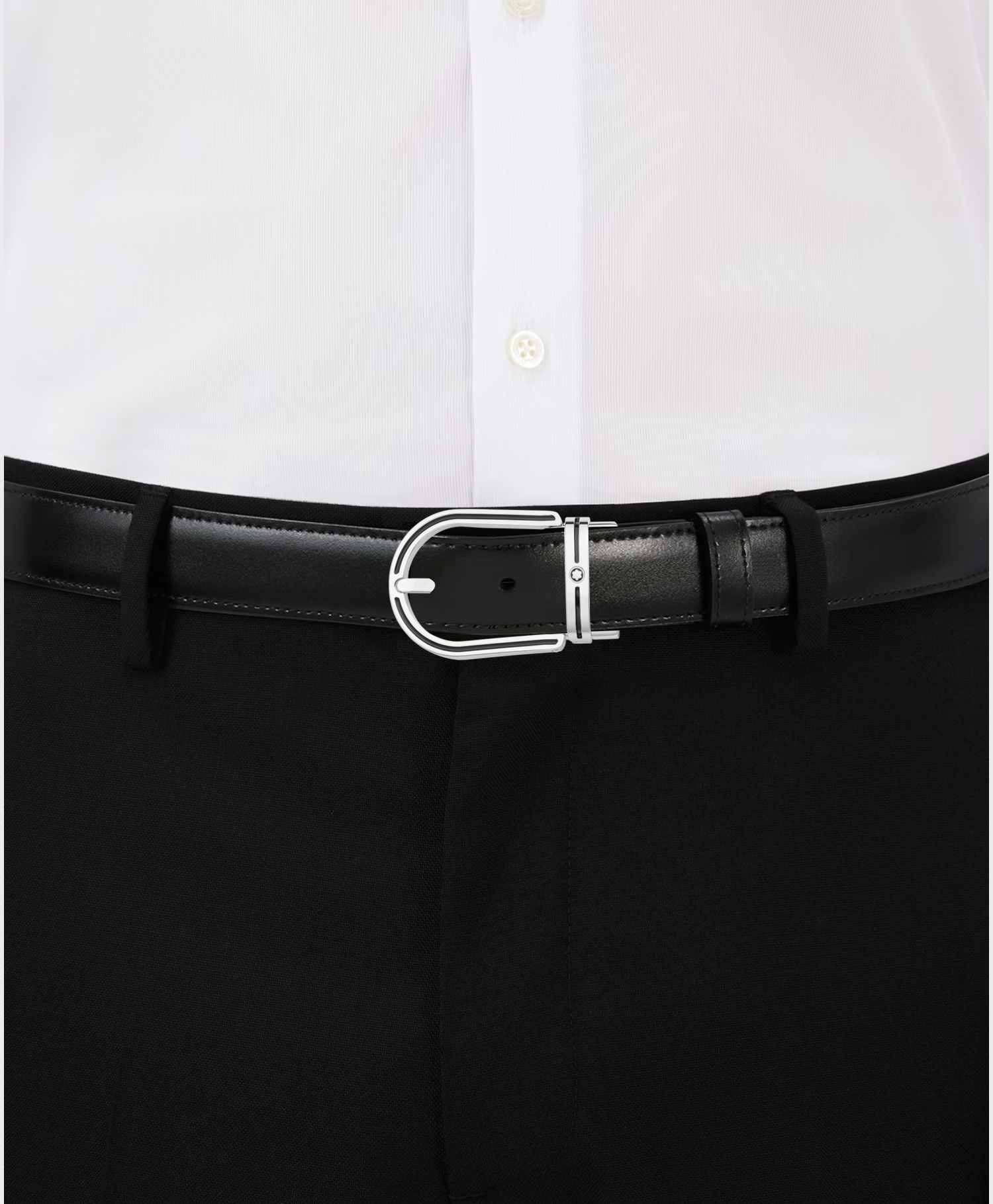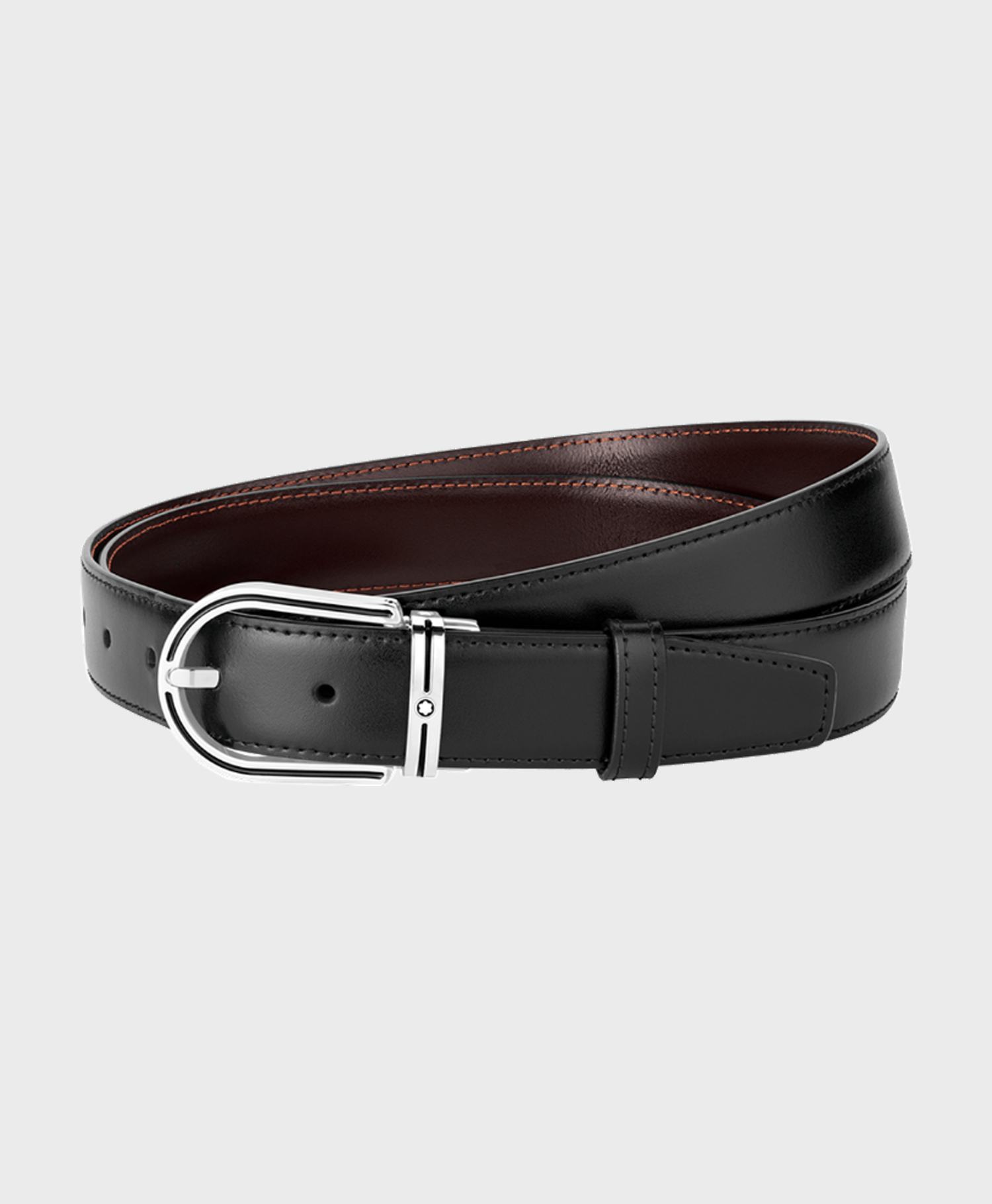 Dây lưng Montblanc 30mm chính hãng ở Store Việt Nam / Montblanc Horseshoe Stainless Steel And Black Enamel Insert Pin Buckle Belt 30mm MB126015