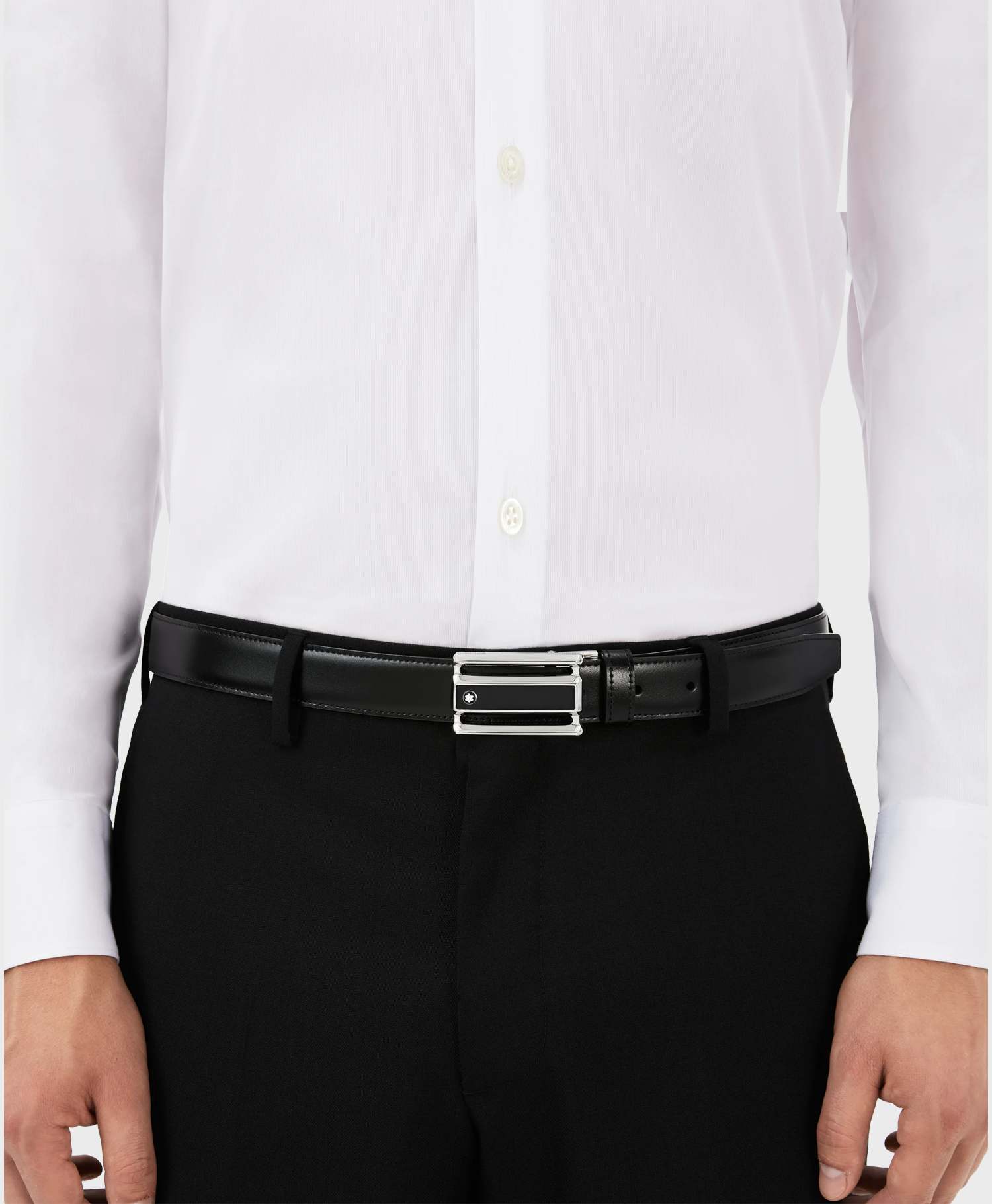 Giá thắt lưng nam Montblanc MB114423 chính hãng bao nhiêu? / Montblanc MB114423 Men’s Reversible Leather Buckle Steel Belt