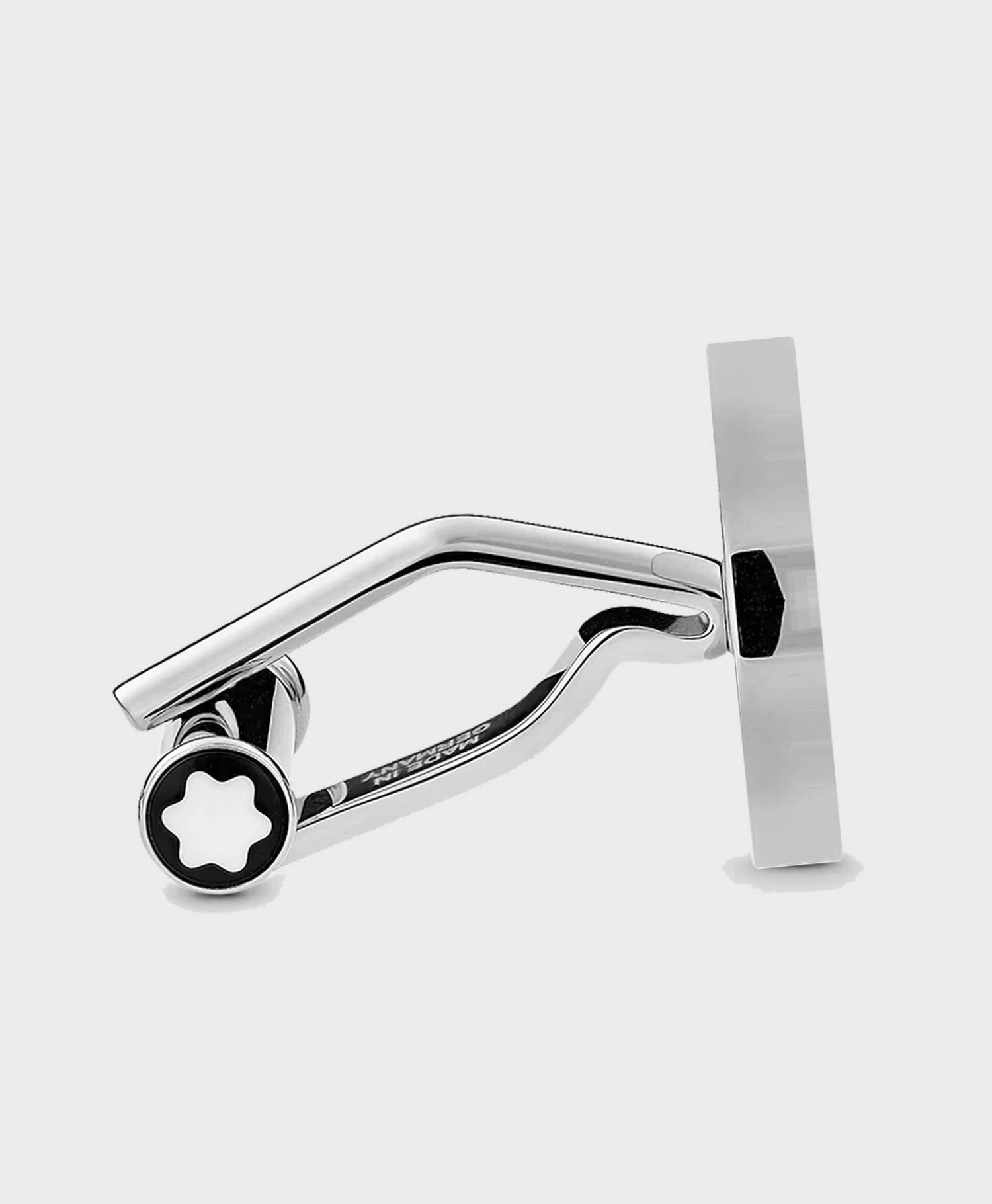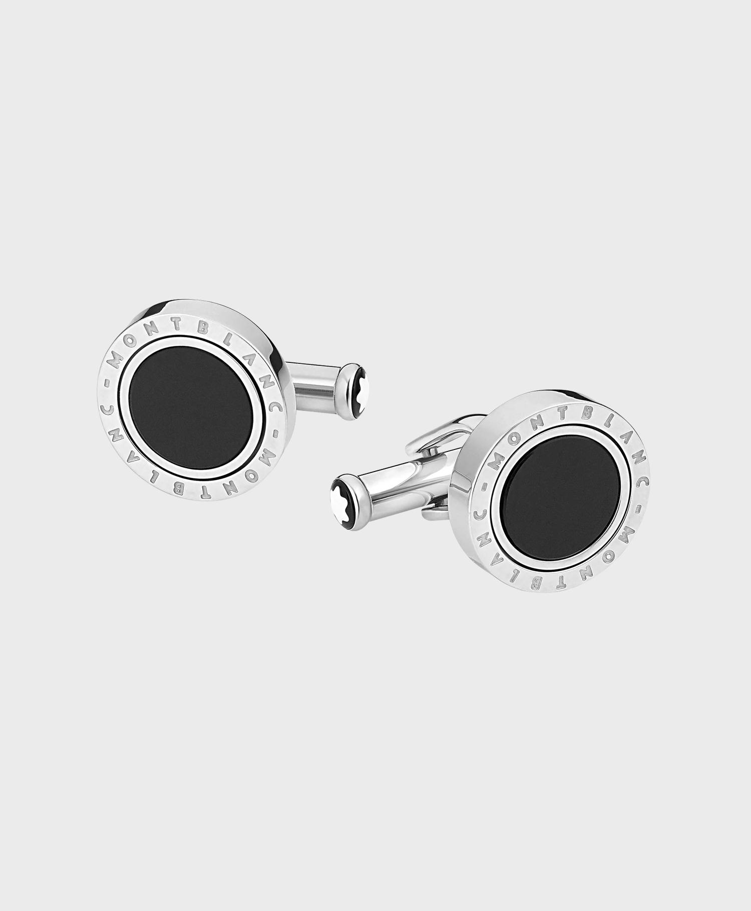 Điểm nhấn của sản phẩm chính là mặt khảm đá mã não đen bóng, được đặt ở trung tâm và mang hơi hướng thiết kế đặc trưng của dòng Meisterstück huyền thoại. Bao quanh là khung viền bằng thép không gỉ cao cấp, được đánh bóng hoàn hảo, tạo cảm giác sang trọng và hiện đại. Trên mặt khuy là biểu tượng chữ Montblanc khắc chìm tinh tế – Hình ảnh tượng trưng cho sự hoàn hảo và đỉnh cao của thương hiệu.