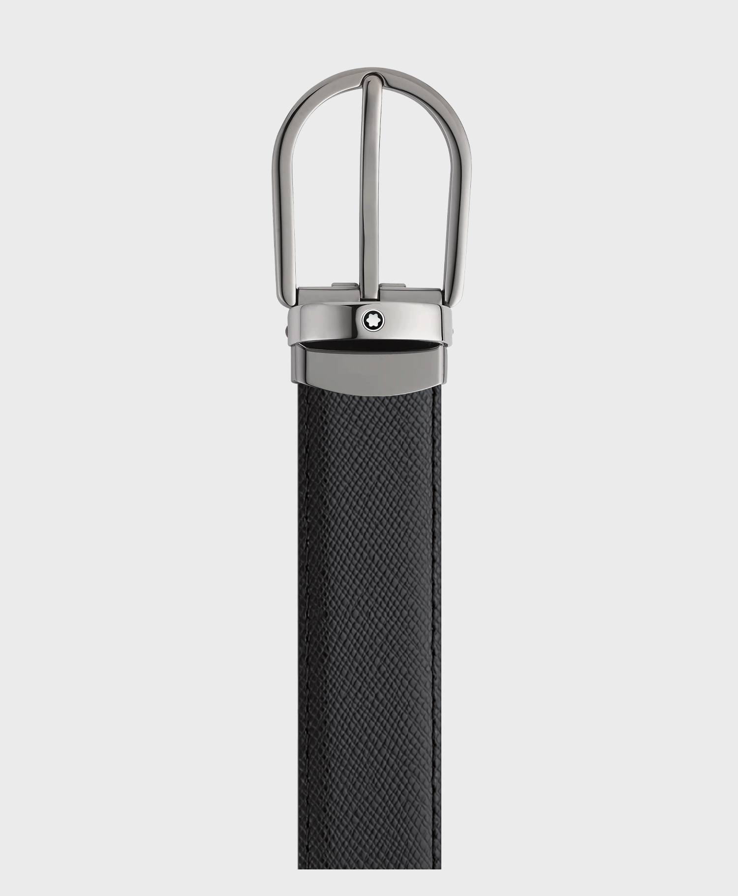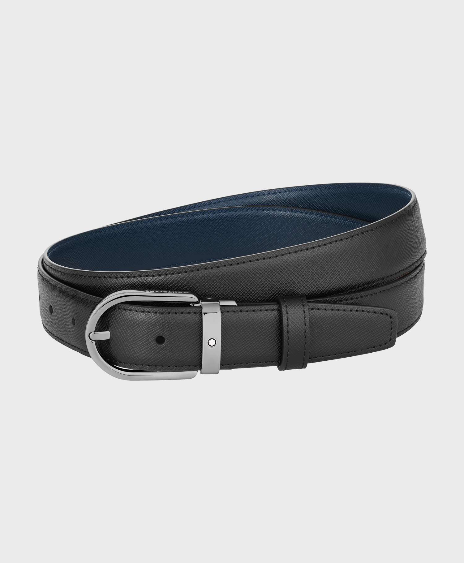 Thắt lưng Montblanc chính hãng giá bao nhiêu? / Montblanc Horseshoe Buckle Black/Blue 30 mm Reversible Leather Belt MB128763